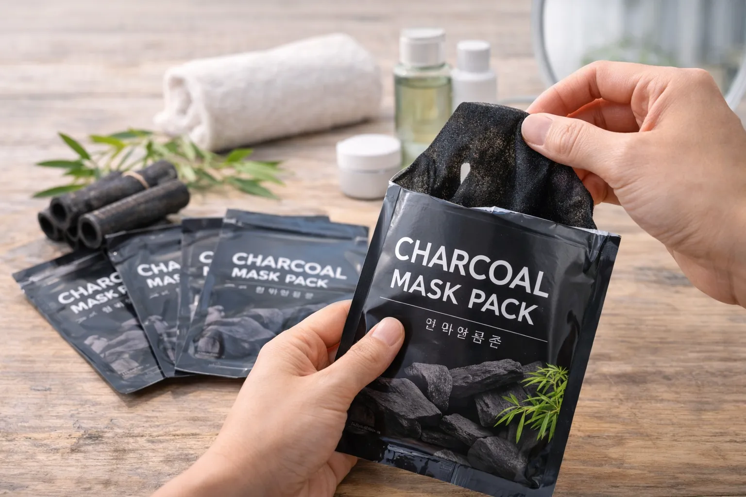 くん炭は、竹や木材を炭化させて作られる自然由来の素材であり、近年は韓国コスメ界でも注目を集めています。特に黒パッケージのフェイスパックに配合されることで、肌へのやさしさと高い吸着力が両立されている点が特徴です。くん炭の微細な多孔質構造が、肌表面の余分な皮脂や汚れをやさしく吸着し、毛穴詰まりを予防します。